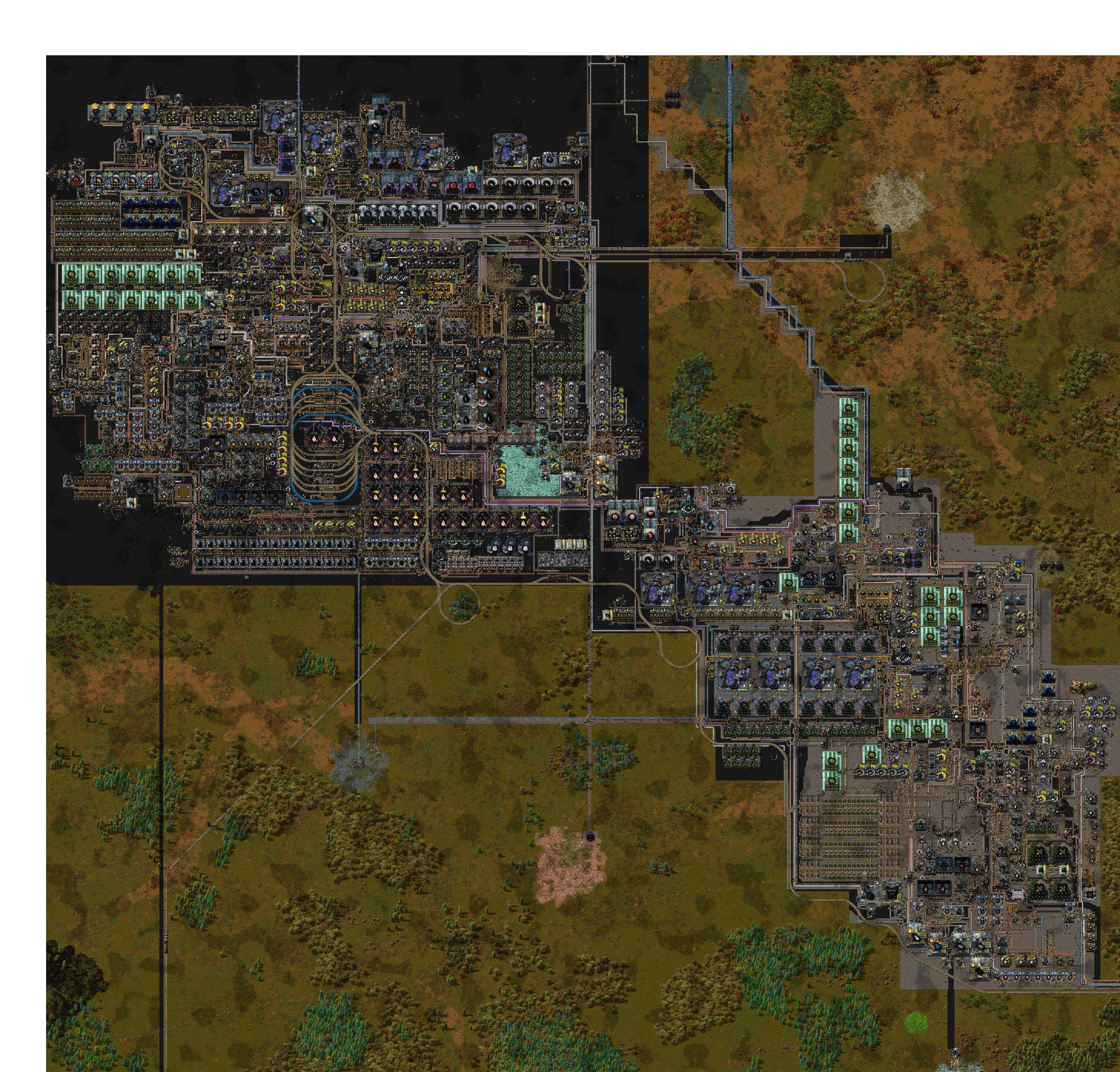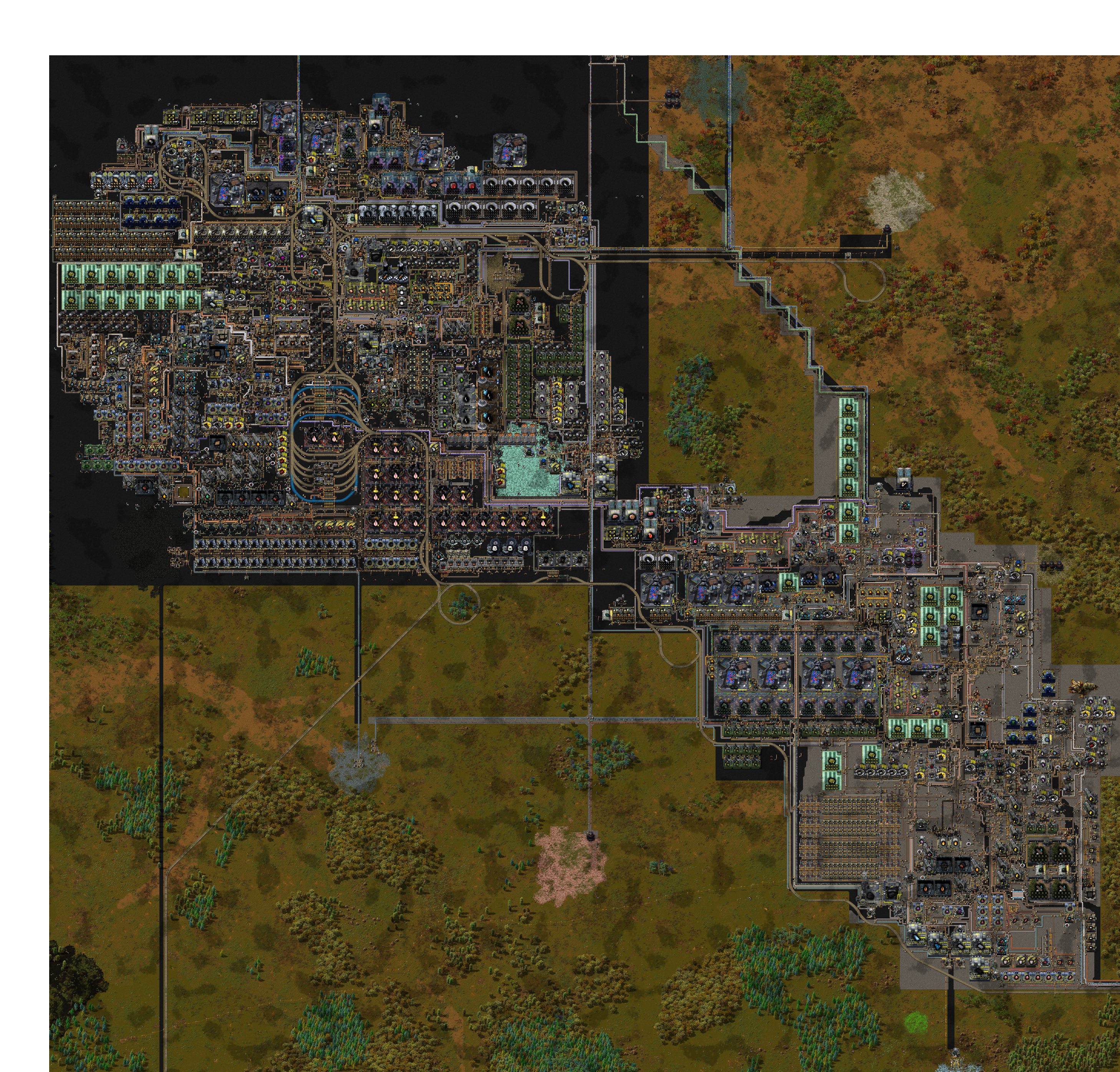 Hello! It's been a while. Updates broke all my yafc pages so I had to recalculate everything. I used the excuse to plan all the way to py2 science rigorously. As a result, I noticed that more throughput was needed in a few parts, so I've added a bit more tar processing and copper, which I ended up completely rebuilding as the previous design was stuck in all directions.